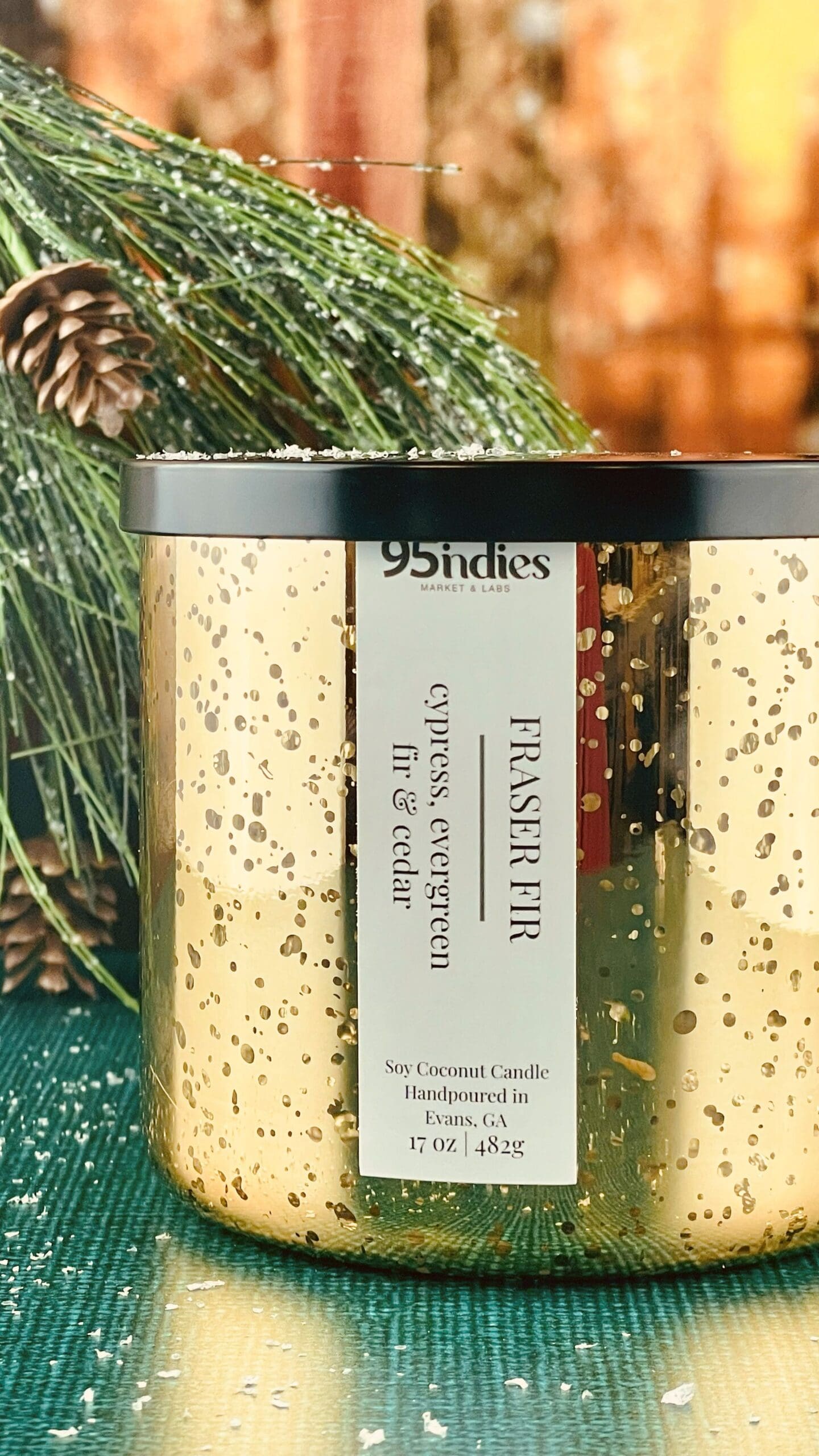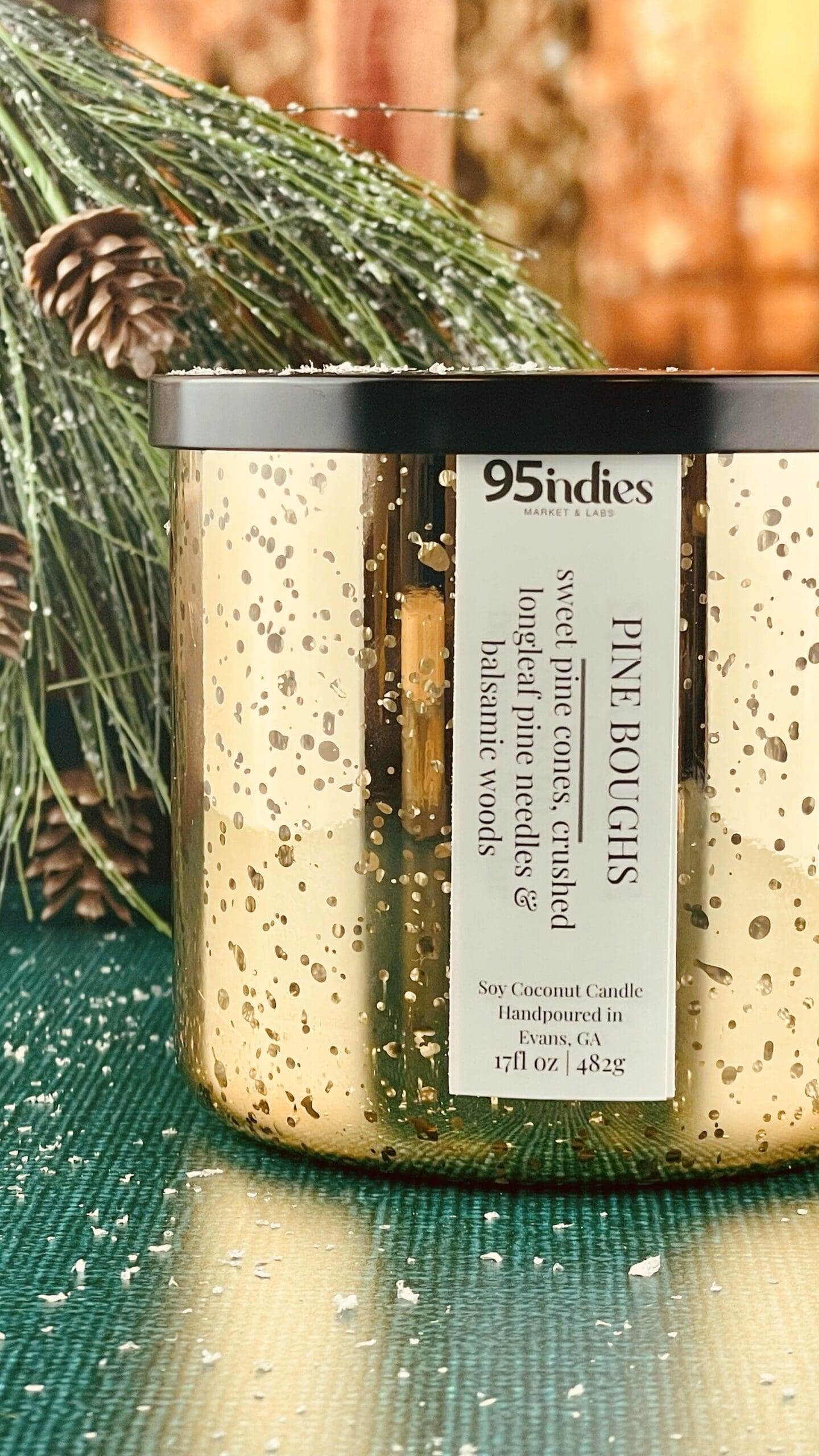 Our 17 oz candles are hand-poured in small batches using a clean-burning soy–coconut wax blend and thoughtfully layered seasonal fragrances—evergreen, fruit, spice, and soft sweetness—designed to feel warm, familiar, and lived-in rather than overly festive.